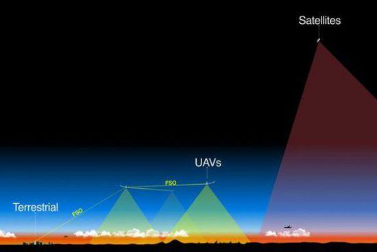 “天鹰”的激光技术曾应用于美国航空局向月球传输信号,当无人机飞行到18000米高度时,可以通过激光和毫米波技术向地面发射网络信号,该激光系统的准直性可以打中18公里外一角硬币大小的目标,网络覆盖半径达到96公里。