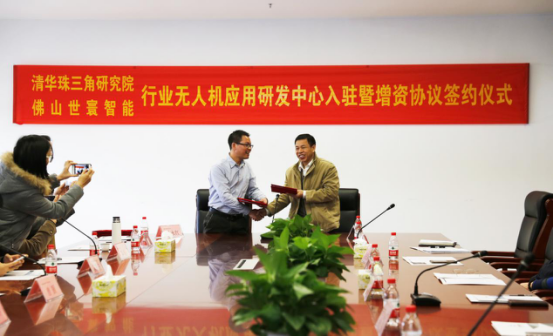 2016年12月29日,清华珠三角研究院与佛山世寰智能科技有限公司共建协议签约仪式,共同推动无人机在行业应用的常态化,提升无人机在行业应用领域的价值。