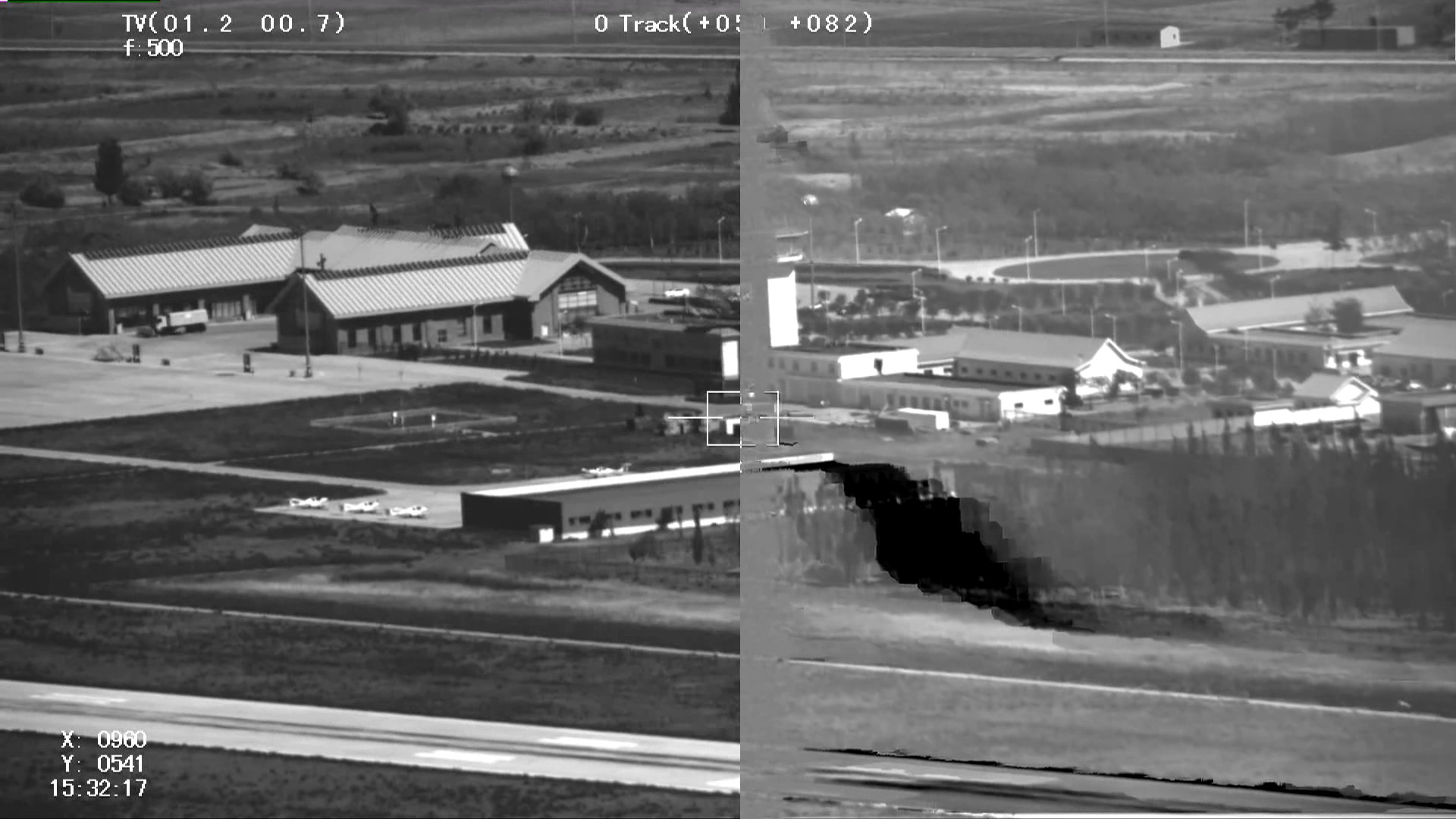 彩虹四在低能见度条件下执行红外侦察任务的图像(左侧图像为已处理,右侧为未处理)