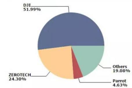 在消费级无人机领域,大疆一路领跑,成为全球智能硬件领域的一个独角兽,在无人机领域一家独大。近日根据IDC发布《2016年无人机行业报告》来看大疆占据了整个全球无人机行业市场份额的51.99%。