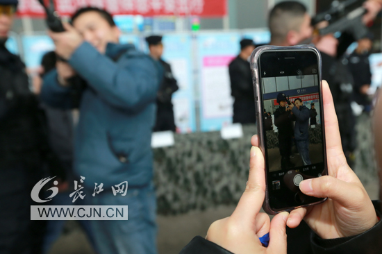 春运将至,1月4日中午1时,武汉火车站东进站口前人头攒动,不时发出欢呼声,原来武汉铁路警方正在此举行警营开放日活动,努力营造“平安、有序、温馨”的春运出行环境,让旅客们走进警营、走近武汉铁路公安民警,实现警民互动,“零距离”的面对面感受铁路公安警务工作,让旅客们真真切切感受到铁路民警就在大家身边。