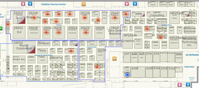 今年CES展览自然也少不了无人机展览。此次无人机的展位部分集中于东馆南厅。国内比较出名的展商昊翔、亿航、大疆、零度都在这里部有展位。
