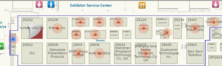 蓝色点为零度智控的展位