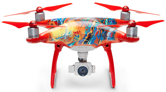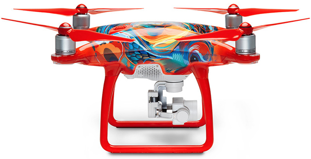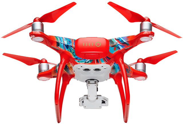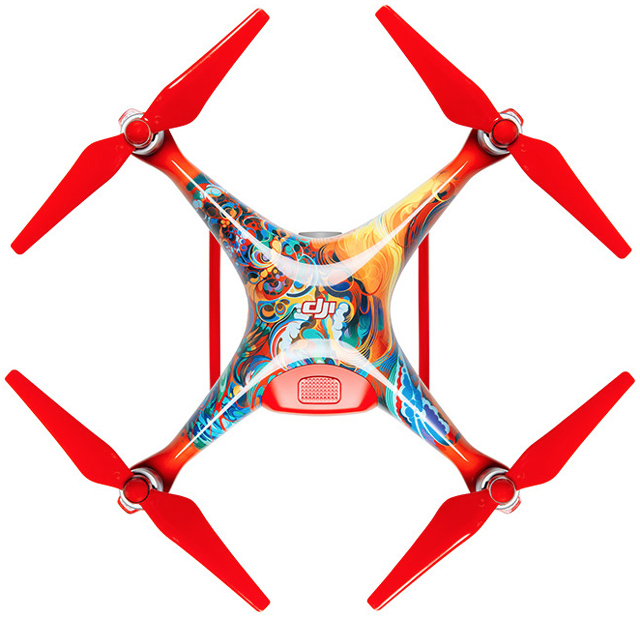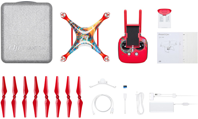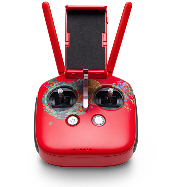 为庆祝2017中国农历新年,大疆近日推出了一款采用绚丽涂装的特别版精灵4无人机。新款无人机大量使用了中国传统中表达喜庆的红色,四个螺旋桨也被全部涂成了红色,这无疑增强了其在空中飞行时的辨识度。除此之外,无人机与遥控器还采用了由插画家Martin Sati所设计的抽象型凤凰图案。据悉,新款精灵4无人机的售价为1,199美元(约8,257元人民币),并仅在新年期间销售。