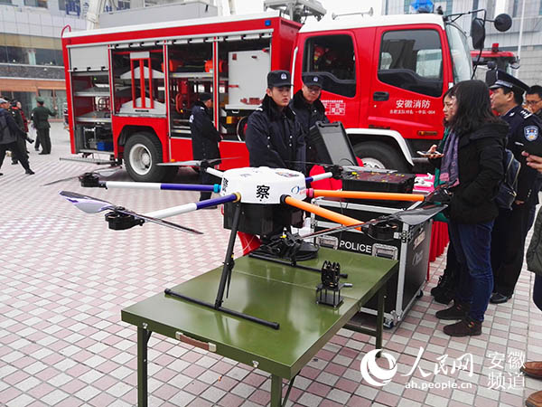 数米之内,隔着衣服也能让人暂时失去行动能力的电击枪;带着VR眼镜,警用无人机携带的镜头,能随着眼睛转动;全国公安系统唯一的水路两栖艇,80码时速,将成为打击水面犯罪、实施救援的神器……1月10日上午,安徽省公安厅、合肥市公安局举行“110”宣传日活动,展示了大量警用装备。