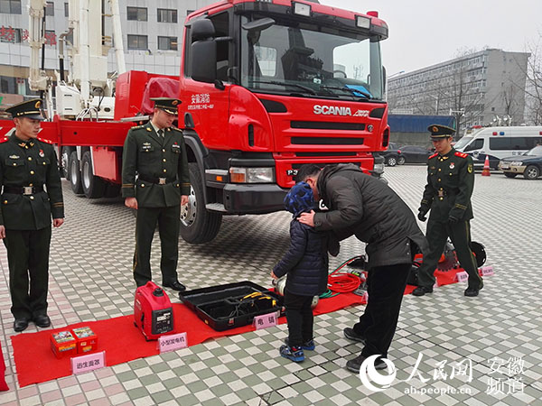 市民带孩子观看消防展示装备
