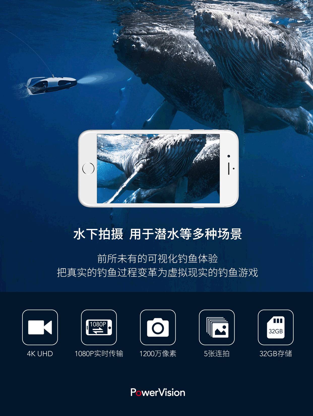 4K 1200万像素高清摄像,1080P实时传输,轻松捕捉海底震撼风景。不再需要强大阵势的专业设备,不再需要专业的潜水技术,让你一秒拍出大片作品。