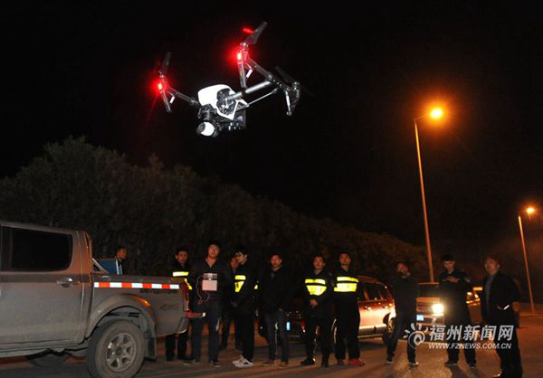 无人机夜间巡查跟踪渣土车。