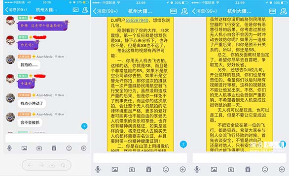 视频的结尾处标注了拍摄器材为大疆新出的设备Mavic御以及作者的ID号,小编通过该ID号进行了查探,查找到了最初作者发出该视频的地方为杭州某无人机交流群: