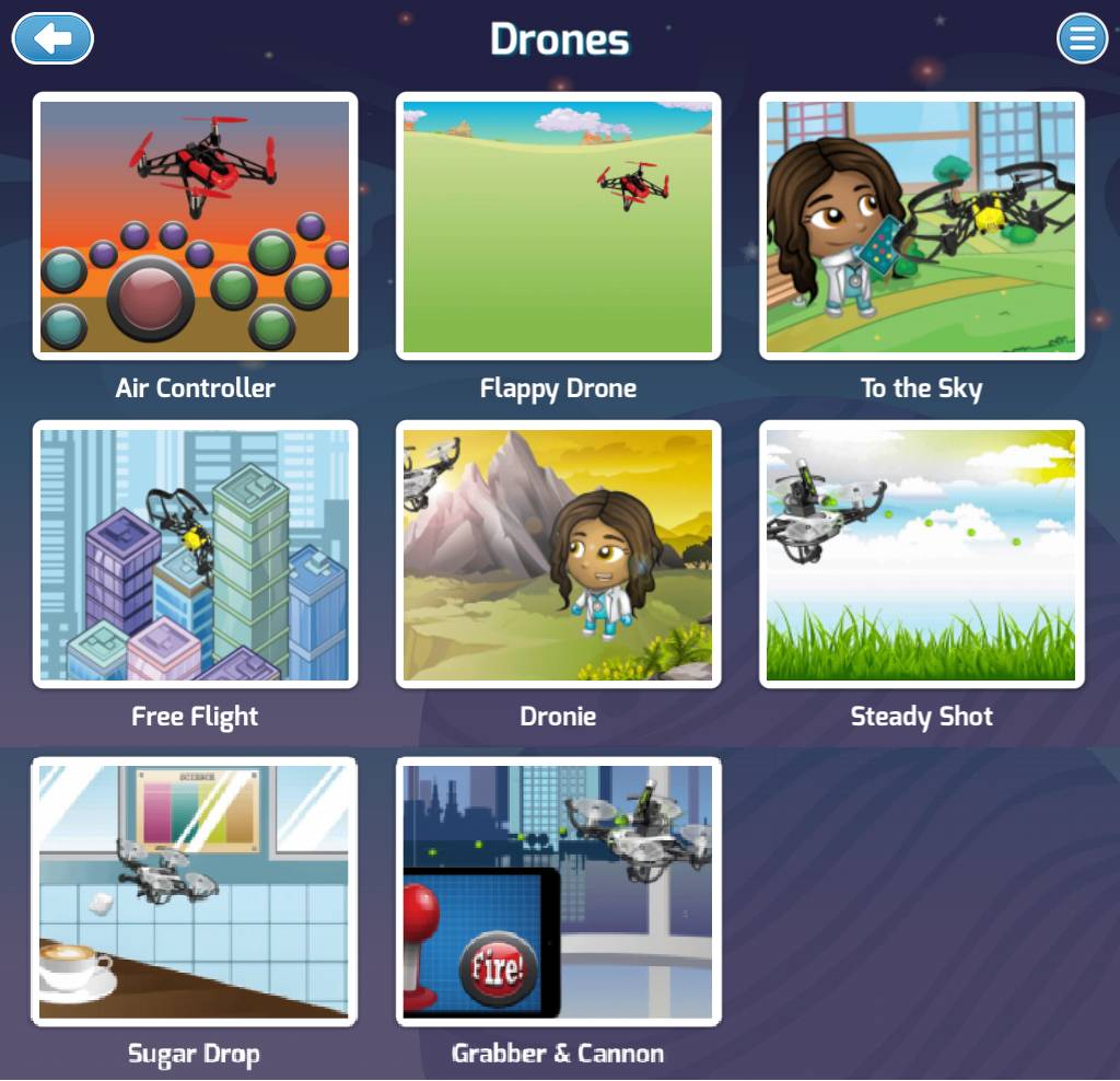 目前,Tynker 支持 Parrot Minidrones 迷你无人机系列,包括 Parrot Rolling Spider 、Parrot Airborne 系列、Parrot Jumping 系列,以及 Parrot 最新推出的 Parrot Mambo 和 Parrot Swing。