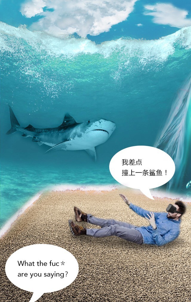 你躺在海滩上看风景,看风景的人在身侧看你,VR眼镜带来虚拟和现实世界的叠加,将海底影院随身携带。