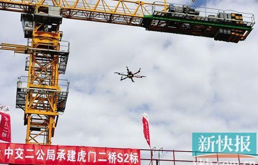 无人机来拍摄非常普遍,但用在大桥施工上你听过没?昨天,施工人员正操纵着无人机,牵引着直径3毫米的高强度尼龙丝飞越1200米长的大沙水道(见上图),全程历时3分钟。3毫米的过渡索牵引成功后,建设者只需经过4次置换牵引,便可将22毫米直径的钢绳固定至东西两岸索塔,完成先导索过江施工。本次无人机牵引悬索桥先导索过江在