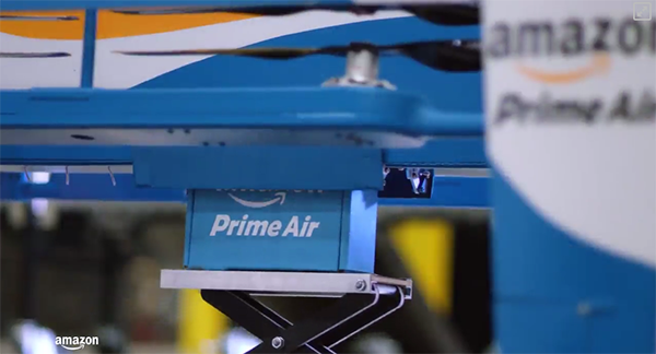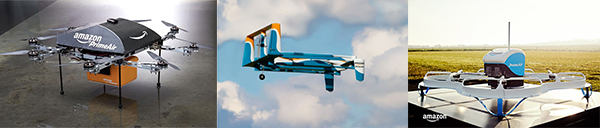 以国外著名的电商平台亚马逊为例,他们早就在 2013 年就开始有计划想要使用无人机送货,现在他们的无人机配送业务依旧属于试运营的状态。亚马逊的无人机送货业务被命名为 Amazon Prime Air,目前他们已经研制了三款专门用于配送自家仓库商品的无人机,原型机是较为普通的六轴无人机,下面带有商品包装盒的卡扣。后续做出来一款类固定翼的无人机,但实际上还是通过电机和旋翼垂直飞升或者前进。现在最新款的就是有保护旋翼外框的四轴无人机,但是比原型机大很多,而且有专门放置商品包装盒的内仓。亚马逊可以说是在无人机快递业务里面投入最早,同时也最有决心的一家公司。