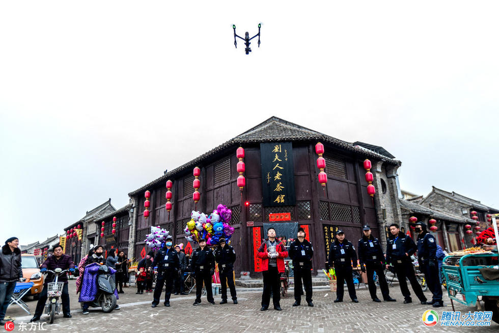 2017年1月27日,除夕,河南省滑县县城道口镇使用无人机监控巡查,切实做好春节期间烟花爆竹禁燃禁放工作。
