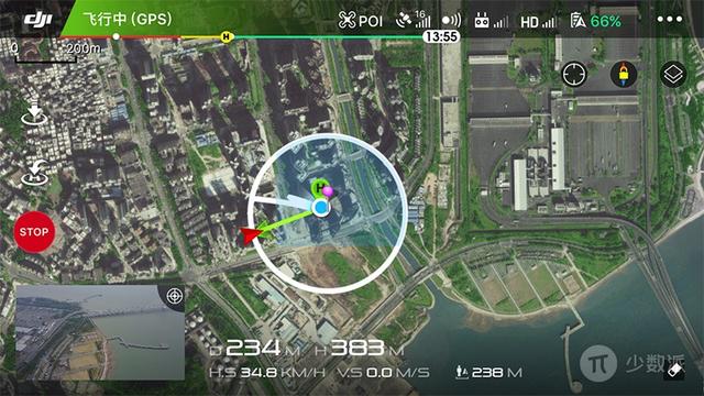 通过指点飞行,你可以直接在画面中选择无人机到达的位置,无人机会自动计算一条「笔直」的航线自动飞向指定位置。