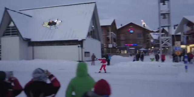 别人都是往下坡划,这哥们让无人机拉着自己往上划,简直是逆向行驶啊!