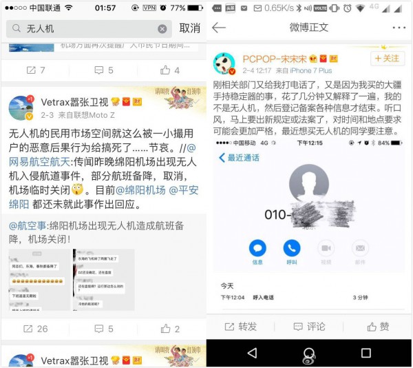 在一些城市和地区,公安部门对购买和使用无人机已经采取了登记备案制度,不少北京的玩家在2015抗战胜利70周年阅兵之前,应该都接到过公安部门的警示电话。结果今年春节假日,短短半个月就出现了三起无人机闯入限飞区事件,引得一部分网友吐槽:民用无人机市场的发展本就困难重重,现在又要被一小撮用户自己的愚蠢搞死。