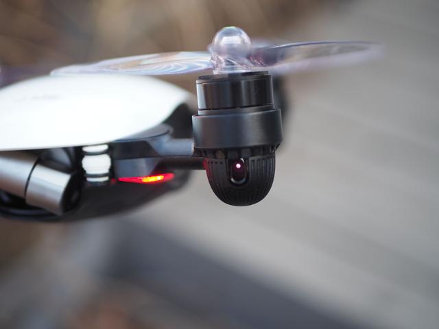 最初拿到机器本以为是没有避障功能的,但在拍照的时候看到了一些细节,这货居然有避障功能?因为除了 Mavic Pro,这些小型无人机多数都是没有避障功能的,因为如果真搭载双目避障系统,手机级别的芯片可能还真不够用。
