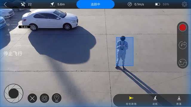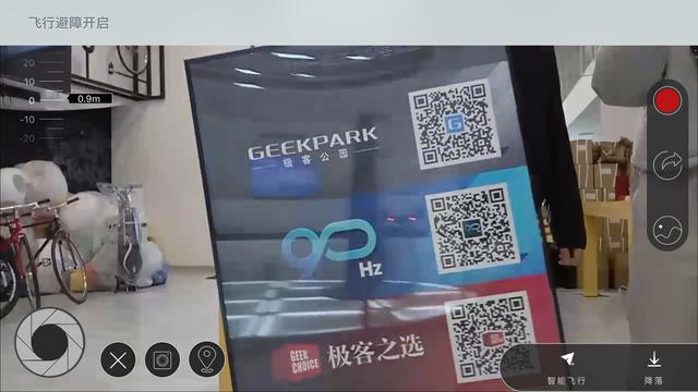 但这个避障系统还是挺好用的,当你主动靠近的时候,它能够自动向后退,当飞行距离障碍物一米左右的时候会自动停止前进。