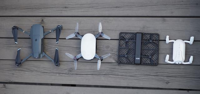 首先,不得不说的是拿到无人机,它比我原先预想的还是要大了一点,尺寸为 169x169mm,拿起来还是有点重的, 550 克左右(整机含电池)和其他的小型无人机 200 多克的重量比起来还是略沉,但和 Mavic Pro 743g 的重量又少了很多。