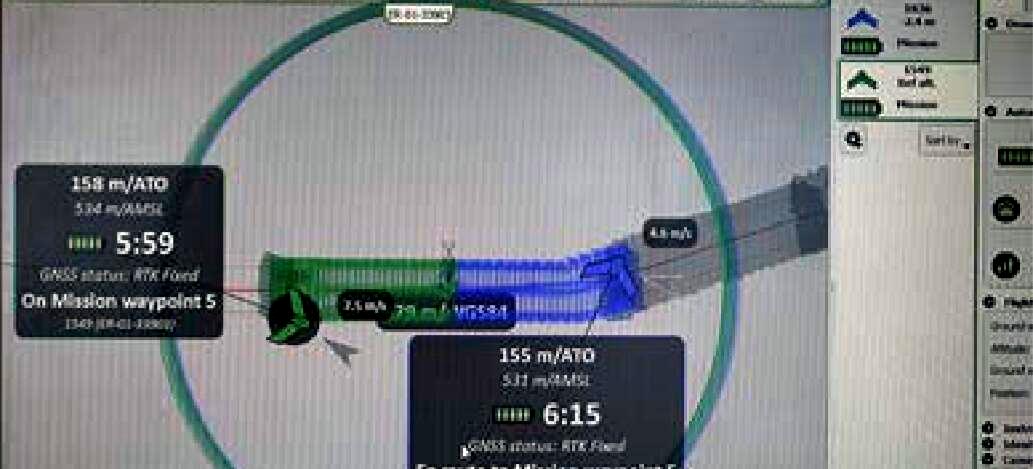 受益于飞行规划软件eMotion的多架无人机飞行功能,以基站为中心的两个方向的飞行能同时进行,飞行范围为3100米X400米