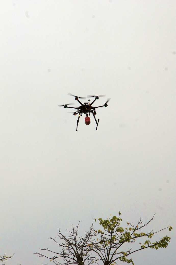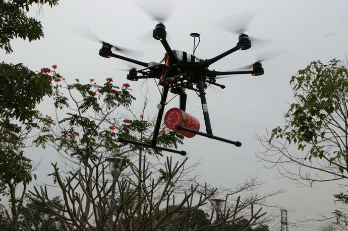 2月9日下午,深圳市森林消防训练基地里出现一架携带“干粉灭火弹”的无人机。伴着“嗡嗡”的声响,无人机在半空悬停,一枚“干粉灭火弹”随即和机身分离准确落到预定位置。这是森林消防支队信息组组长陈斌在进行无人机应急抛投实验。为了实现这一功能,陈斌利用闲暇时间对无人机进行了改装并取得成功。今后遇见人员被困时,可以先用无人机将通讯设备、急救包、绳索等传递过去,争取救援时间。