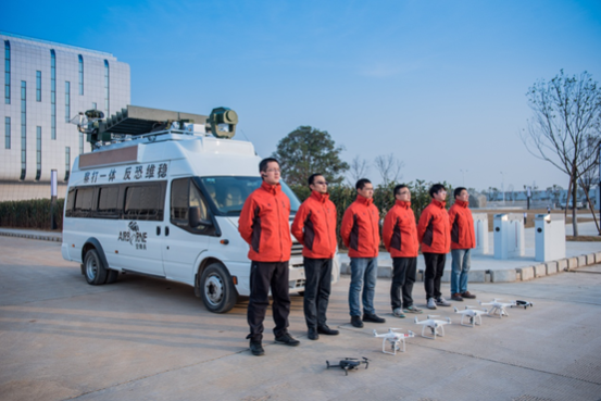 首先,为了测试系统对于不同类型无人机的管控能力,选取了深圳大疆“御”、“精灵4”、小米科技的1080P和法国Parrot的bebop2等4款目前应用最为广泛的无人机作为测试对象,能够代表国内外消费级无人机的最高水平。其次,专家们针对测试大纲进行逐一推敲和论证,以确保测试过程的科学性。最后,为了确保测试记录真实有效,测试组在“空降兵”反无人机指挥车内和无人机飞手处等都安排了专门的记录人员和观测人员进行全程跟踪。