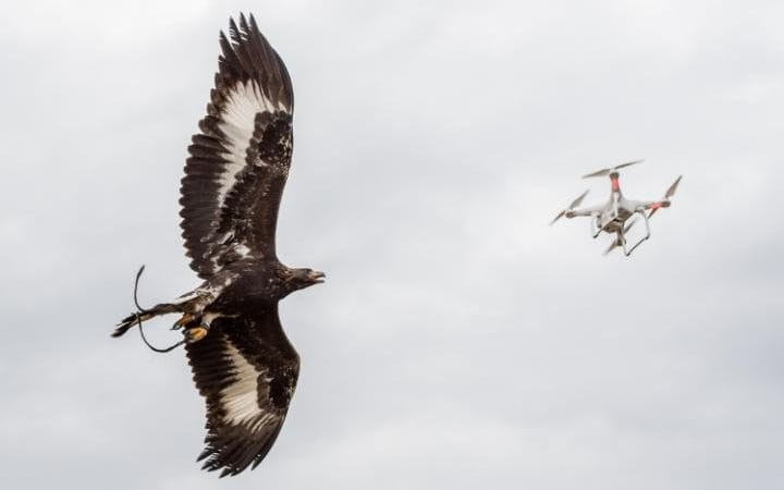 随着无人机的使用日益频繁,引发的问题也越来越严重:私占空域、妨碍飞机的紧急迫降,甚至引发撞机事故。各国对于这些“嚣张”的无人机纷纷亮出自己的看家本领。如法国对老鹰进行特殊训练,让它们把无人机当作猎物进行捕捉。