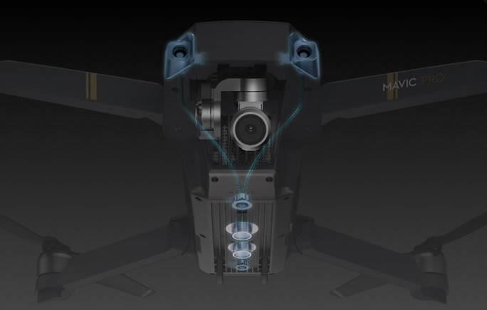 后来精灵4及MavicPro的双目立体视觉技术,则把精准悬停带到一个新的高度,硬件上配备了下视双目和前视双目,让悬停更加稳定。