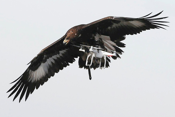 今年以来,已有数起无人机闯入军用或者民用机场,影响到航空安全。为此,各国开始投入大力气研发拦截和迫降无人机的技术与设备。法国空军就成立了专门的金雕培育训练小组,希望利用金雕凶猛的捕猎能力“对付”非法飞行的无人机。
