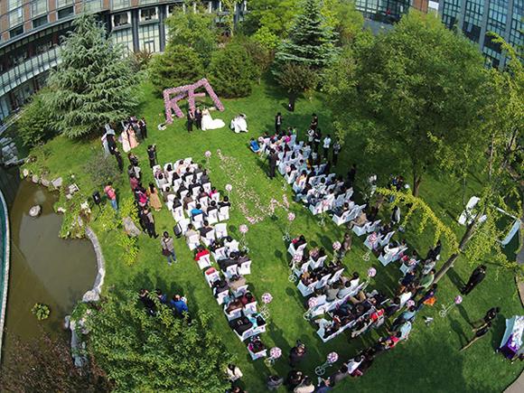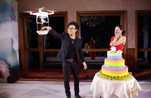 无人机带着戒指,缓缓向新人飞来,这种画面,乍看之下似乎很浪漫,但实际上,汪童鞋也是冒着很大的风险的。没有彩排我是不信的。