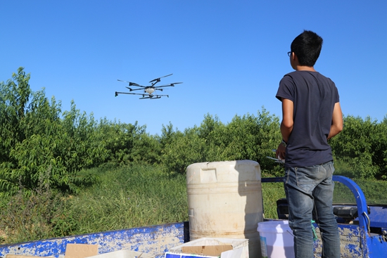 记者了解到,果农在日常病虫害防治时,各家各户不能协调在同一时间或短期内完成植保作业,造成喷药时害虫转移,不喷药时害虫回迁的恶性循环,灭虫效果非常差。农户只能多次喷药、大量喷药以治理害虫的多次往复迁移,使用传统防治方式成本高。按照传统的人工植保模式,作业人员完全暴露于农药之中,与农药亲密接触,极易造成人员中毒,更甚者会危及生命。植保无人机是空中作业,可以有效避免地面机械作业对环境的破坏,避免植保作业人员与农药直接接触,避免农药对植保作业员身体的损害。在果园病虫害的防治作业中多采用液力雾化技术,药液在叶片上的停留量和停留时间短,约70%的药液直接落入土壤进入地下水,不仅会造成农药的大量浪费,还会造成严重的环境污染。如果采用搭载自适应喷洒控制系统的植保无人机采用定点喷洒,精确药量控制作业方式,将很大程度上减少农药滴入土壤机会,不会造成农药过量和污染。