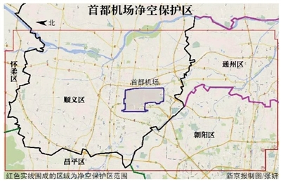 为保证民航客机安全,依照相关法规,民用机场净空保护区域为每条跑道两端20公里、两侧10公里范围。记者了解到,随着首都机场T3航站楼和第三条跑道投入使用,首都机场净空保护区扩大,2010年《北京市民用机场净空保护区域管理若干规定》开始实施,更明确了净空保护区禁止从事的活动。