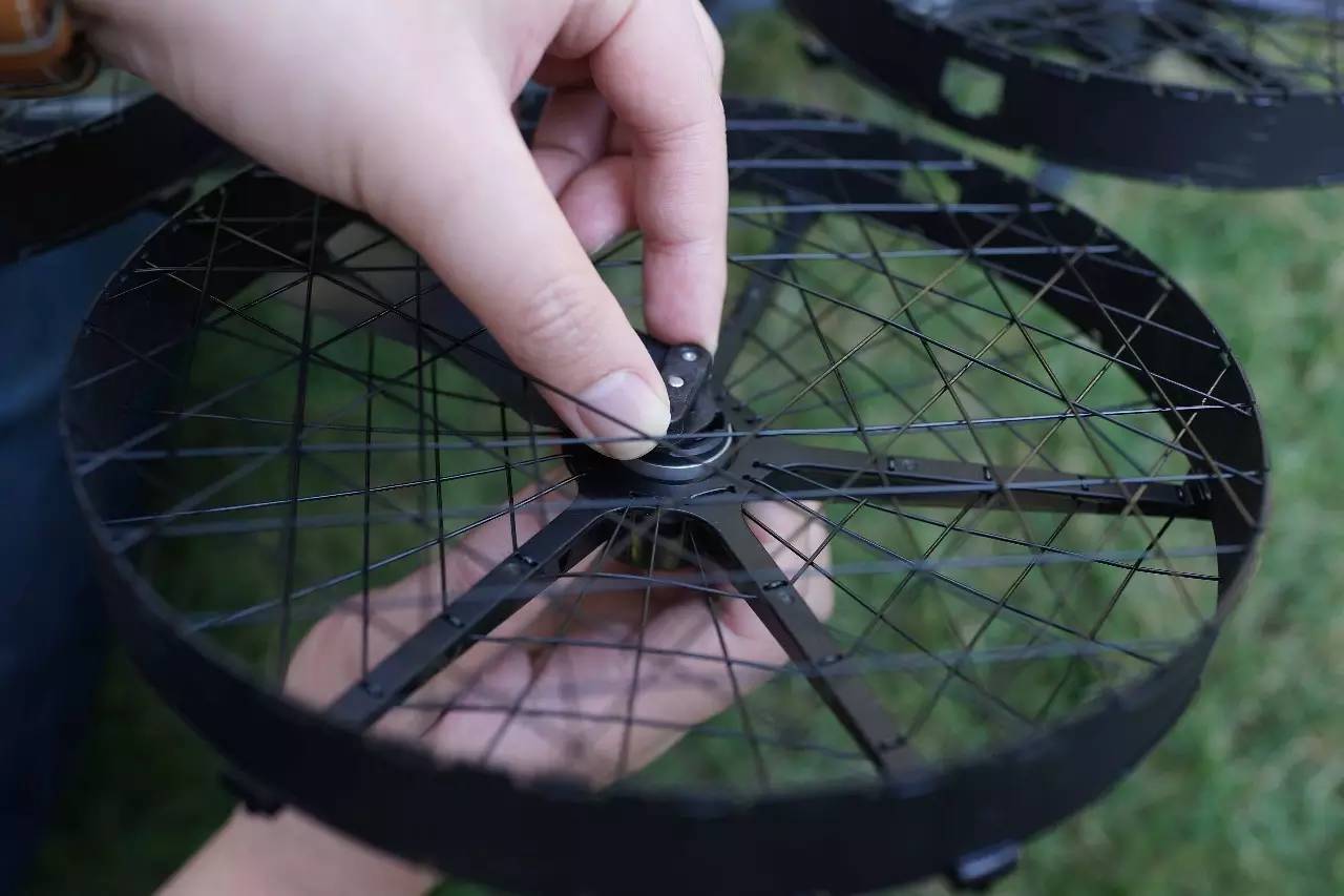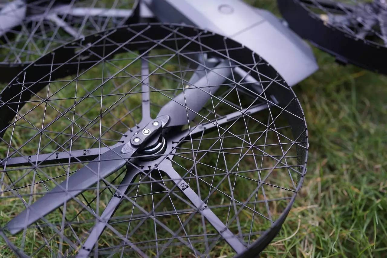 碳环配合特别设计的走线张紧,在把螺旋桨罩起来提供保护的同时,更核心的作用则是大大提升了整体结构的刚度。