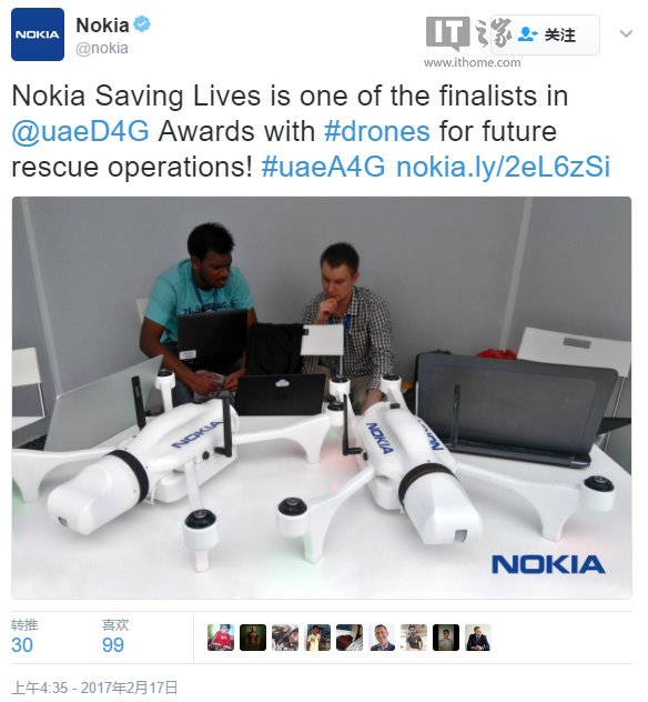 2月18日消息 诺基亚发布过《拯救生命》主题视频,其中表现了诺基亚智能手机和无人机等产品在灾难救援等方面体现的重要作用。现在诺基亚官方Twitter公布了救援无人机的照片。从外观上看,这款设备设计简约时尚,美观大气。