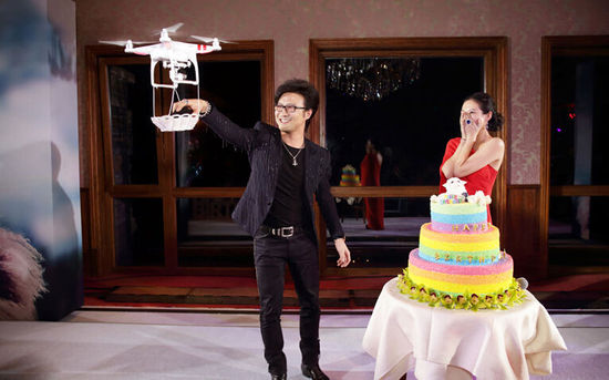 无人机求婚:著名歌手汪峰在2015年向著名演员章子怡求婚,就是用了大疆无人机来求婚,汪峰抱得美人归的同时,也终于上了头条。