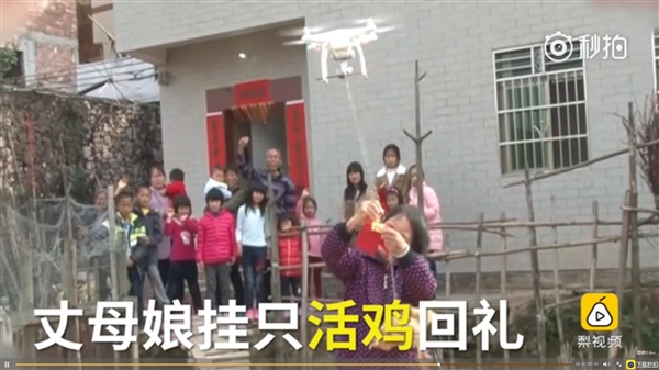 广东一女婿嫌传统的串门送礼太普通,决定把红包绑在无人机上送给岳母。岳母大人表示,现在的年轻人是真会玩,这种奇特的方法让自己非常感动。作为回礼,丈母娘在无人机下边绑了一只鸡送回去。