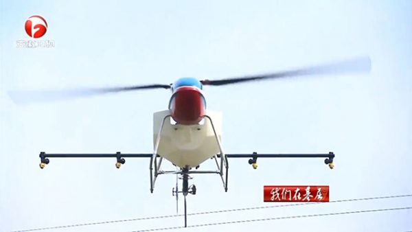 报道中,记者来到阜阳市颍泉区的一块小麦绿色增产示范区,当地正在采用新的方式进行病虫害防治,只见安徽天鹰兄弟的植保无人机飞行在小麦上空,这种植保无人机每小时可作业近200亩,效率是人工的50倍。
