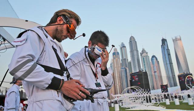 2016年11月迪拜举办了全球首届FPV穿越机大赛,这一用于赛场的无人机采用第一人称视角控制,操作方式暴力而直接——去掉了航拍无人机的GPS模块和智能避障系统,起降和飞行全凭一双手操作,选手一旦经验不及或稍有不慎,无人机就会当场撞毁。但是穿越机简单的结构,也使得它可以飞出100公里/小时的最高时速,称它们是无人机界的“F1”也不为过。这项惊险刺激的穿越机大赛需要选手操作战机按照赛道穿越拱门、躲避沿途障碍并完成规定圈数。
