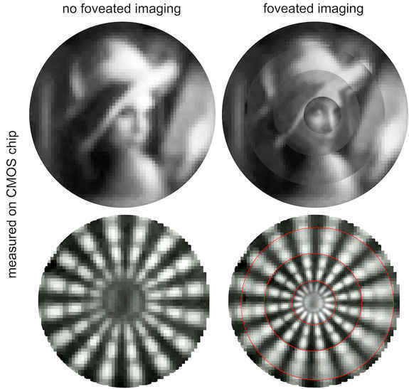 人类和很多脊椎类动物的视野呈现“漏斗状”("foveated" vision)。视觉中心最清晰,而边缘则比较模糊。而这种设计和技术,其实是在模仿人眼或者动物眼镜的成像原理。人会用两只眼睛收集光线,然后大脑会把很多图像的碎片,来汇聚成一个完整、清晰的图像。