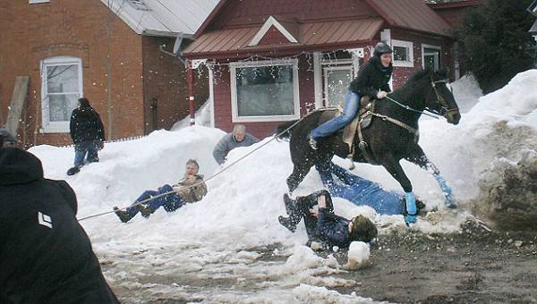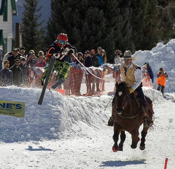马儿受惊冲入滑雪场