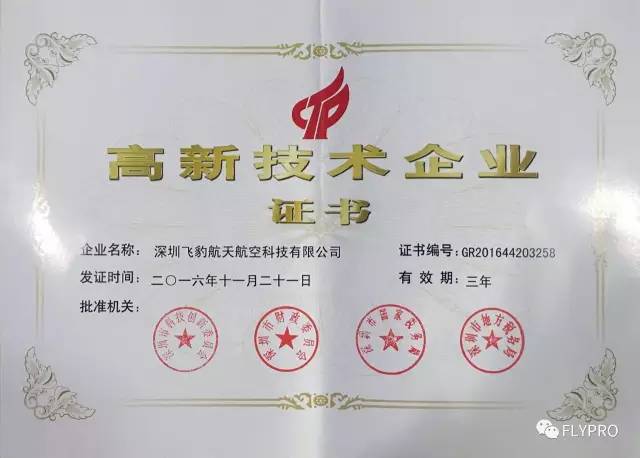 此次获评国家高新技术企业,是每一个FLYPRO飞豹人智慧的结晶和努力的成果,也是所有飞豹人继续团结奋斗、开拓创新、攻坚克难的莫大鼓舞和动力。深圳FLYPRO飞豹无人机将以此为契机,一如既往地重视科技研发的投入,不断突破自我,加强科技成果转化,提升企业的科研实力,在创新中寻求可持续发展,在创新中不断超越,以“新、精、美”的优质产品奉献于社会,提升顾客体验,服务于终端,以增强公司的行业影响力和市场竞争力,努力实现公司的跨越式发展。