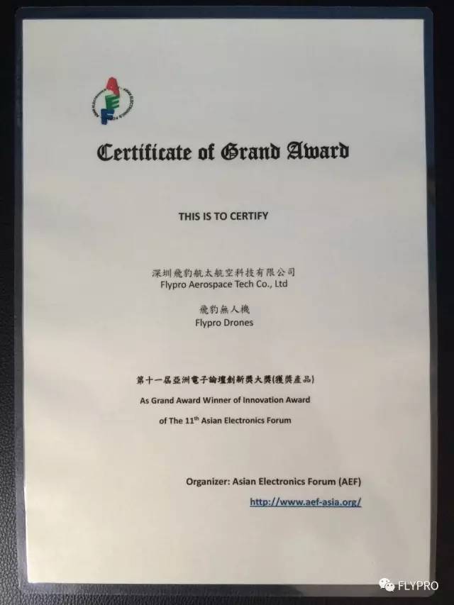多年来,飞豹无人机始终秉乘把产品做到极致的追求,努力打造成一家高新技术企业。先后已荣获:2015年深圳移动互联创新创业大赛季军、第十一届亚洲电子论坛亚洲电子产品创新大奖、第六届“醒狮杯”国际工业设计大赛优秀奖、2016中国无人机产业20强和2016行业影响力品牌等20多个奖项。