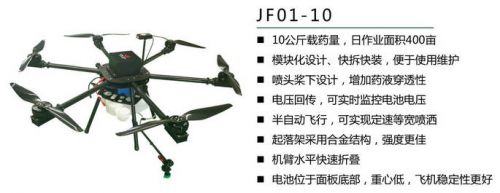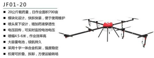 针对这一市场痛点,韦加股份通过和农业大学、国防大学等单位合作,推出了JF01-10六旋翼10公斤级和JF01-20八旋翼20公斤级两款机型,专门用于大田、果园农药喷洒作业。特有的旋翼“十字布局”和坚持桨下施药,成为韦加无人机作业效率和打药效果的双重保证。