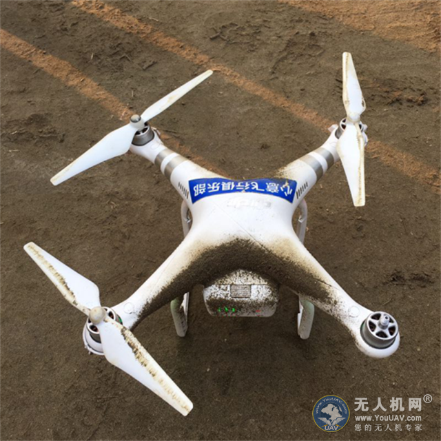 比赛中炸机后失去一只桨翼的大疆精灵3无人机