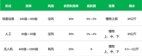 拖拉机改装设备的作业价格每亩约5元左右,机器改装的成本约5000元,而无人机的成本在4万元,作业价格在10元左右,拖拉机的改装设备在价格、获取成本上有优势,是目前无人机植保推广的重要对手,无人机便宜的作业效果不好用户不爱用,好的呢整机价格高作业成本高,导致作业价格降不下来,但是无人机植保能够做到路线规划和断点续航,大面积作业的时候能够不漏喷或者是重复喷,省水省药,而且喷药人员与农药分离,因此在农资使用量、人员安全等方面具有优势。
