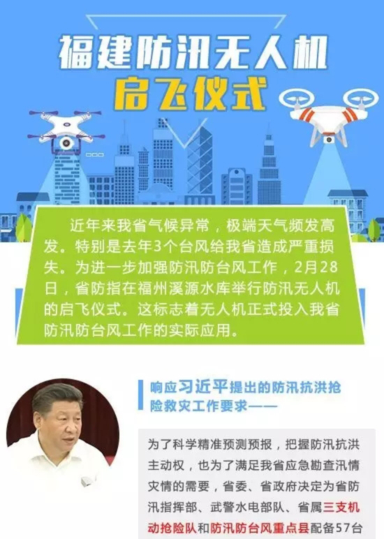 福建防汛用上无人机,三支抢险队和重点县共配备57台