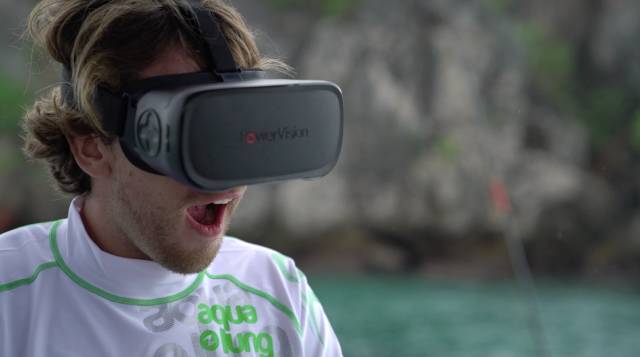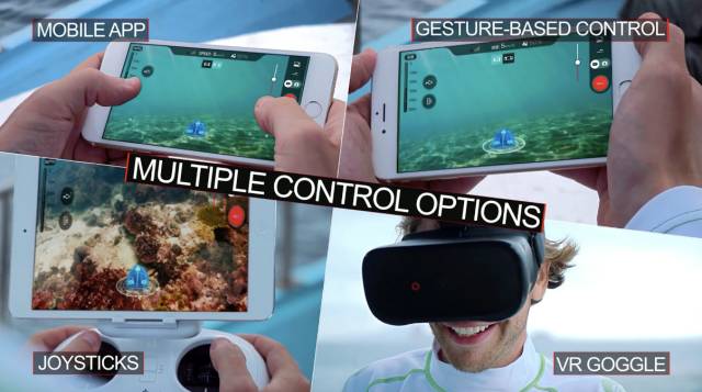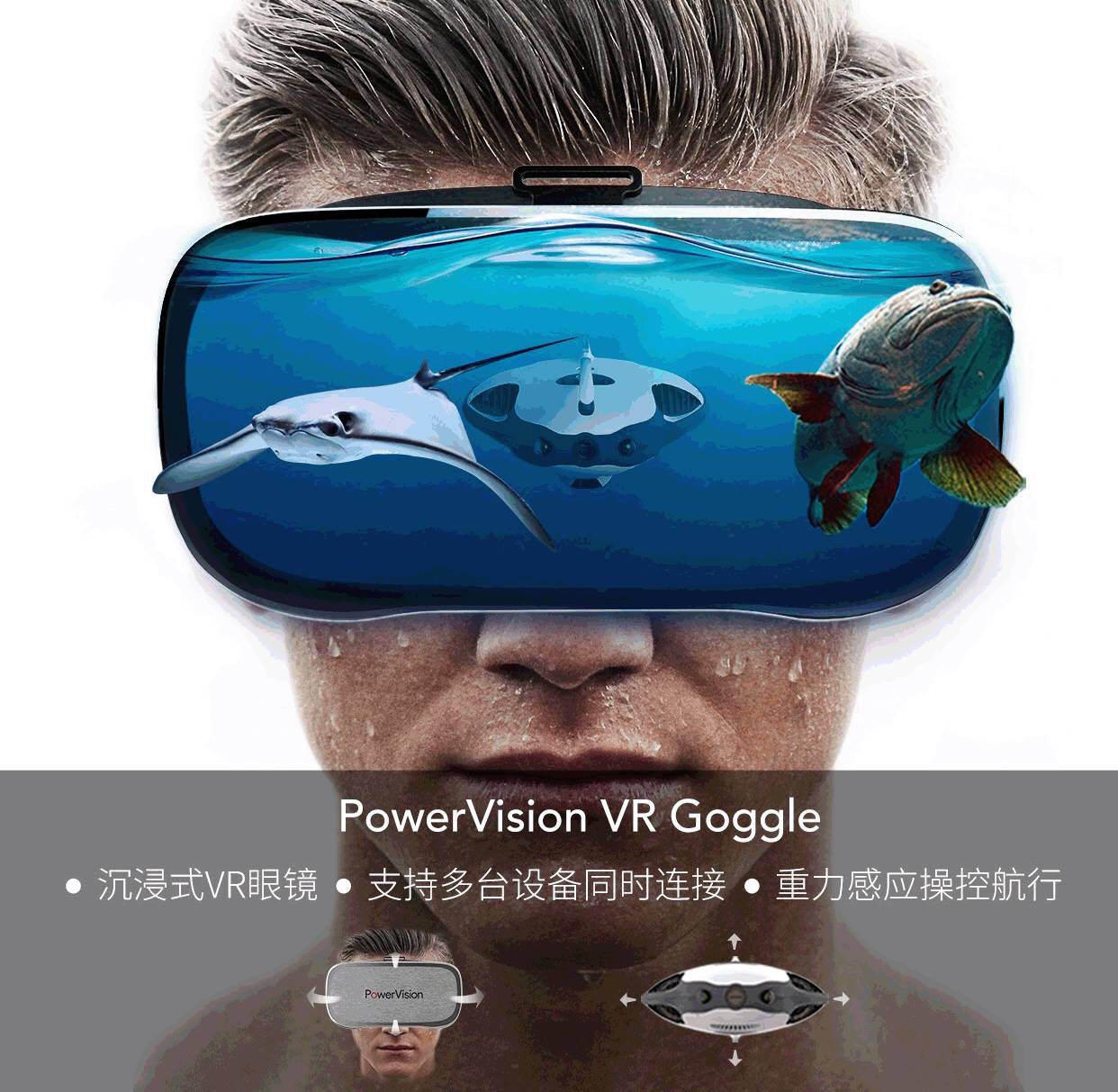 考虑到多用户的需求,PowerRay可以搭配多个VR眼镜同时观看,独乐乐不如众乐乐。而VR眼镜的重力感应控制系统则将用户的双手完全解放,通过头部的向左、向右、向上、向下的姿势控制PowerRay实现左转、右转、上浮、下潜的功能。
