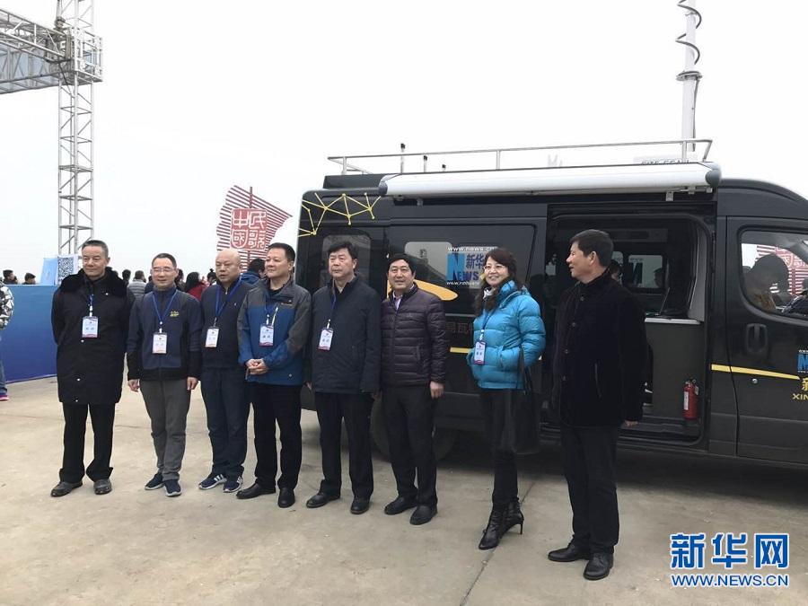 嘉宾与新华网导航直播车合影。