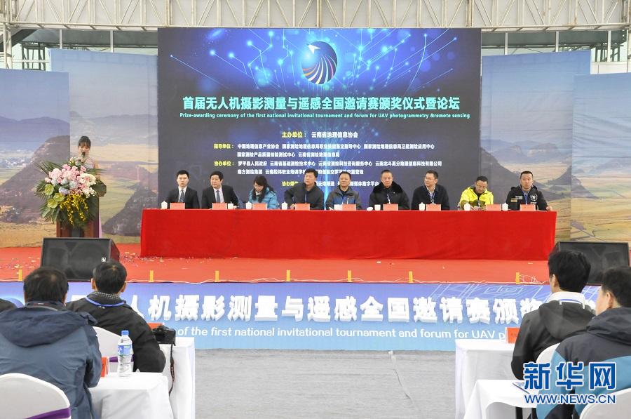 首届无人机航空摄影测量与遥感全国邀请赛颁奖典礼在云南罗平举行,图为颁奖仪式现场。